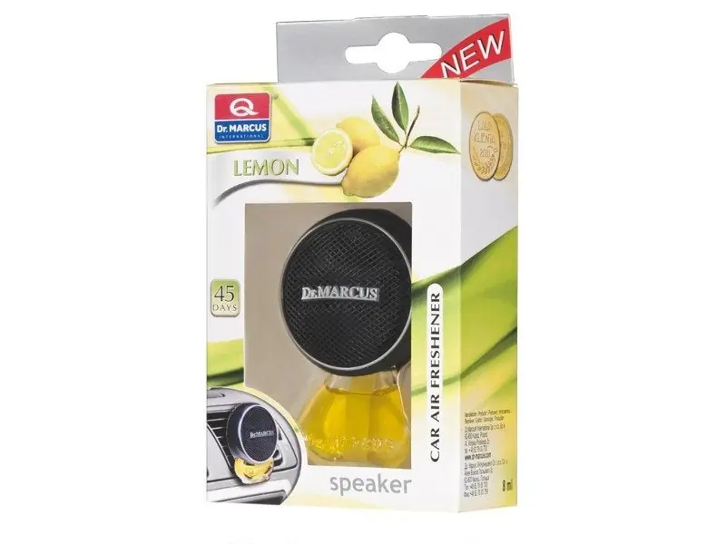 A Légfrissítő hangszóró, citrom tökéletes választás azok számára, akik friss és kellemes illatot szeretnének autójukban. A Dr. Marcus Speaker Shaped innovatív dizájnja nemcsak esztétikus, hanem praktikus is, hiszen az autó szellőzőnyílásába könnyen beilleszthető. Ez az elegáns légfrissítő ideális társ az utazások során, hiszen élénkítő illatkompozíciójának köszönhetően felfrissíti érzékeinket.Műszaki részletekTermék típusa: AutóillatosítóIllat: CitromKialakítás: Diszkrét és elegánsAlkalmazás: Univerzális, minden autóhoz illeszthetőBeépítés / használatAz autó szellőzőnyílásába való egyszerű beszerelés érdekében győződjön meg róla, hogy a nyílás tiszta és szabadon hozzáférhető.A légfrissítőt időszakosan cserélje, hogy a kívánt illat friss maradjon.Figyelem: Vásárlás előtt mindig ellenőrizze a cikkszámot, valamint az autó típusát és évjáratát a megfelelő illeszkedés érdekében.