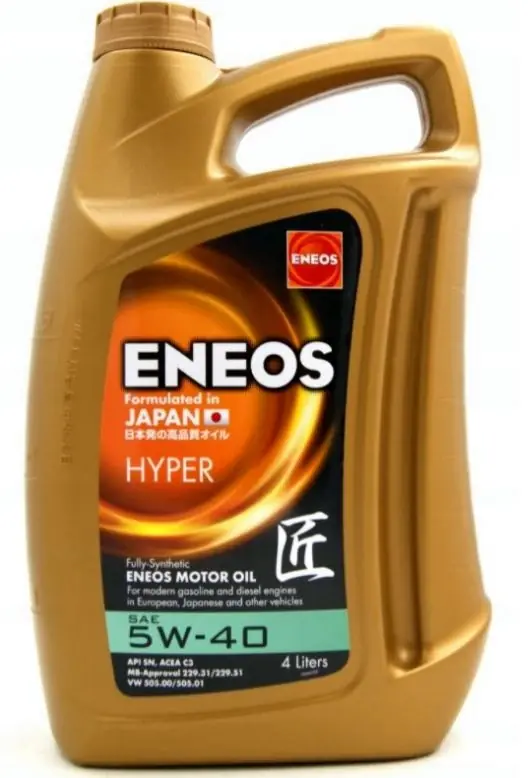Az ENEOS Premium Hyper 5W-40 teljesen szintetikus motorolaj benzines, LPG és dízel motorok katalizátorral illetve turbóval vagy anélkül szerelt változataihoz. Megfelel a modern direkt befecskendezős dízel motorokhoz akár Common Rail, vagy PD TDI befecskendező rendszerrel vannak ellátva. Részecskeszűrővel ellátott motorokba is alkalmazható. Gyártói előírások: API: SM/CF, ACEA: A3/B4(04),C3 VW 500.00/502.00/505.00/505.01, MB: 229.1/229.3/229.31, BMW LL-01/LL-04 Kiszerelés: 4L Olaj típus: Teljesen szintetikus Üzemanyag: benzin/LPG gáz/dízel