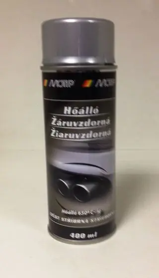 Hőálló festék Ezüst 400 ml aerosol Kimondottan arra fejlesztték ki, hogy magas hőmérséklet hatásának kitéve is megőrizzék tartósságukat, színüket és fényüket. A hőálló festékkel tudjuk kijavítani, védeni és karbantartani a nagyon magas hőnek kitett fém felületeket. A hőmérséklet növekedésével megkeményedik, és ebben az állapotban ellenáll az olajnak és benzinnek. Minősége: * Színtartó, nem válik le és újra be lehet fújni (nem rétegesedik) * Olajnak benzinnek ellnáll *