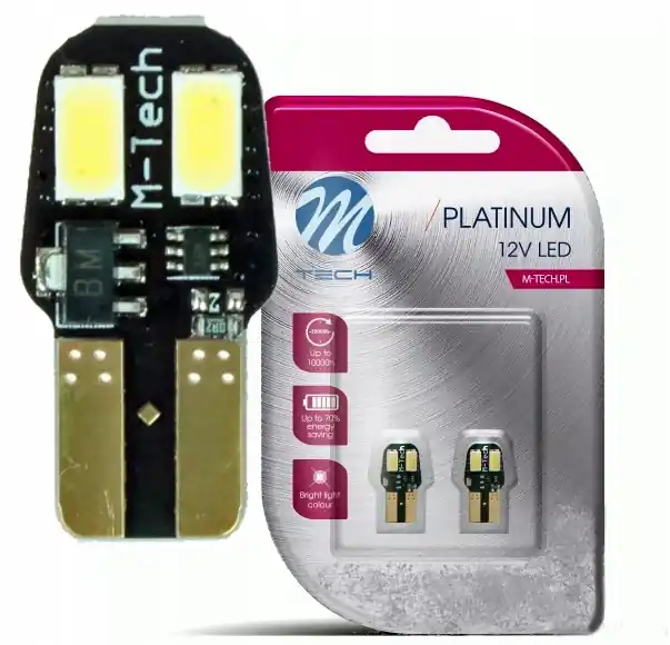 Vedd meg most M-TECH Platinum W5W T10 fehér színű izzó helyettesítő LED CANBUS SMD 6000K (1 pár) LB806W