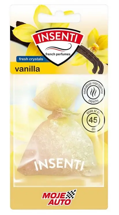 A zacskó kiváló minőségű illatanyaggal átitatott granulátumot tartalmaz, amely fokozatosan bocsátja ki egyedi illatát. Úgy tervezték, hogy az autó belsejében, beleértve a csomagtartót vagy a műszerfalat is, felakasztható legyen; vagy otthon, nappali, gardrób, komód vagy fürdőszoba légfrissítőjeként. Ezeknek a polimer illatgyöngyöknek a biztonságos formája biztosítja, hogy semmi sem ömöljön a műszerfalra!